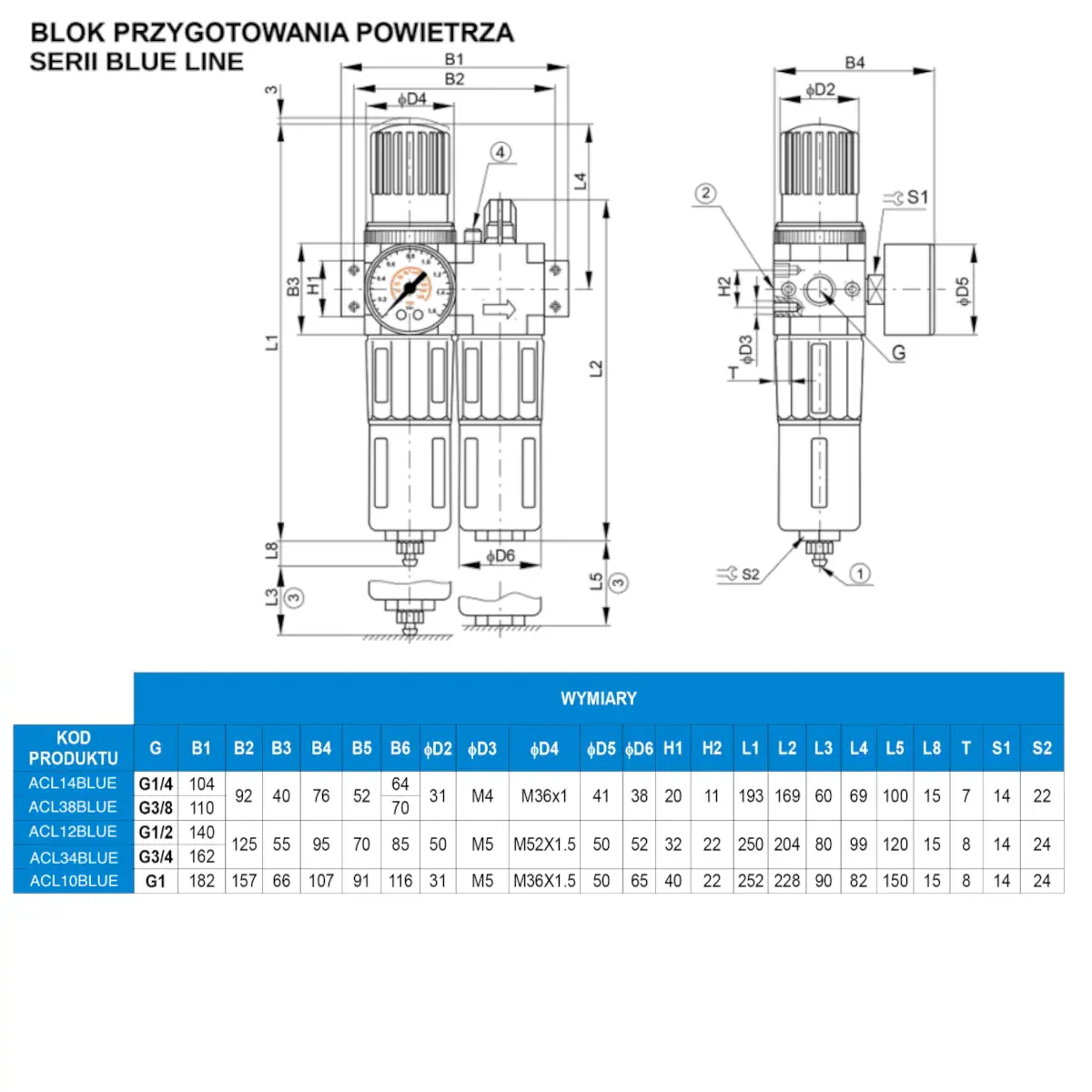 Stacje 2-elementowe do sprężonego powietrza serii Flow ACL12BLUE-AUTOMAT