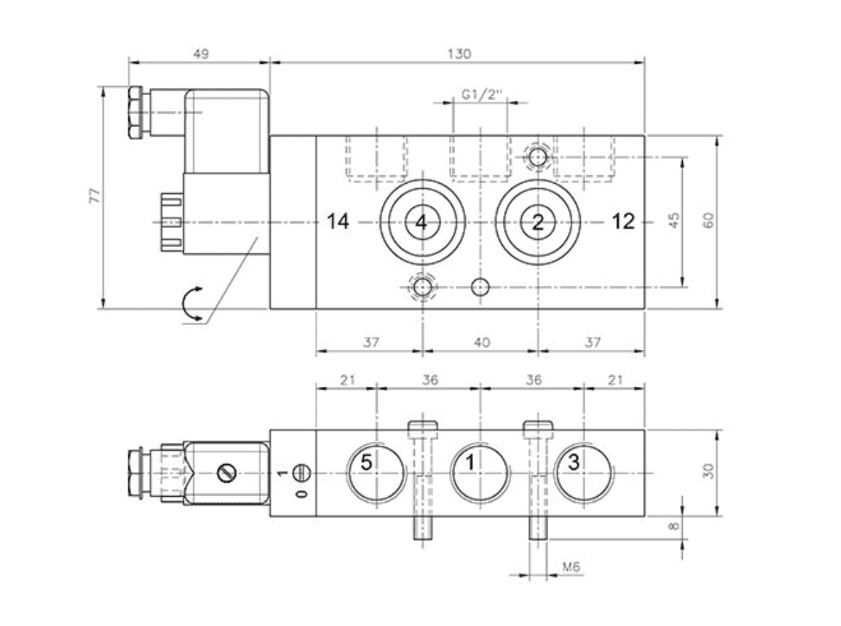 funkcje zaworów: 5/2 monostabilny NAMUR
