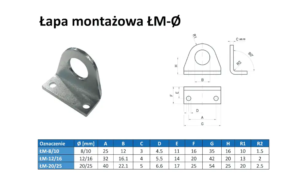 Łapy montażowe do siłowników okrągłych ISO 6432 D20/25 mm