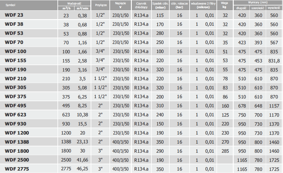 Osuszacze ziębnicze sprężonego powietrza serii WDF Polskiego producenta Walter wykorzystywane są do osuszania sprężonego powietrza poprzez proces jego schładzania i usuwania wytrącającego się kondensatu.