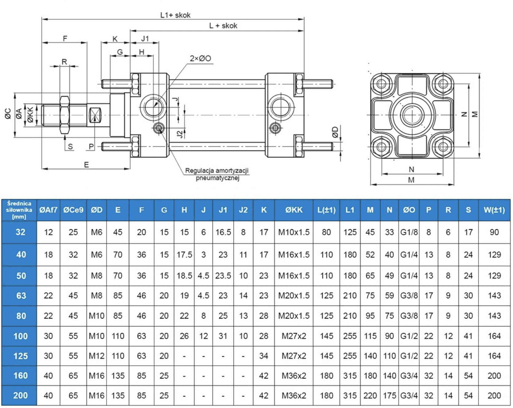 Siłownik kompaktowy UNITOP seria PSKU D32 GZ