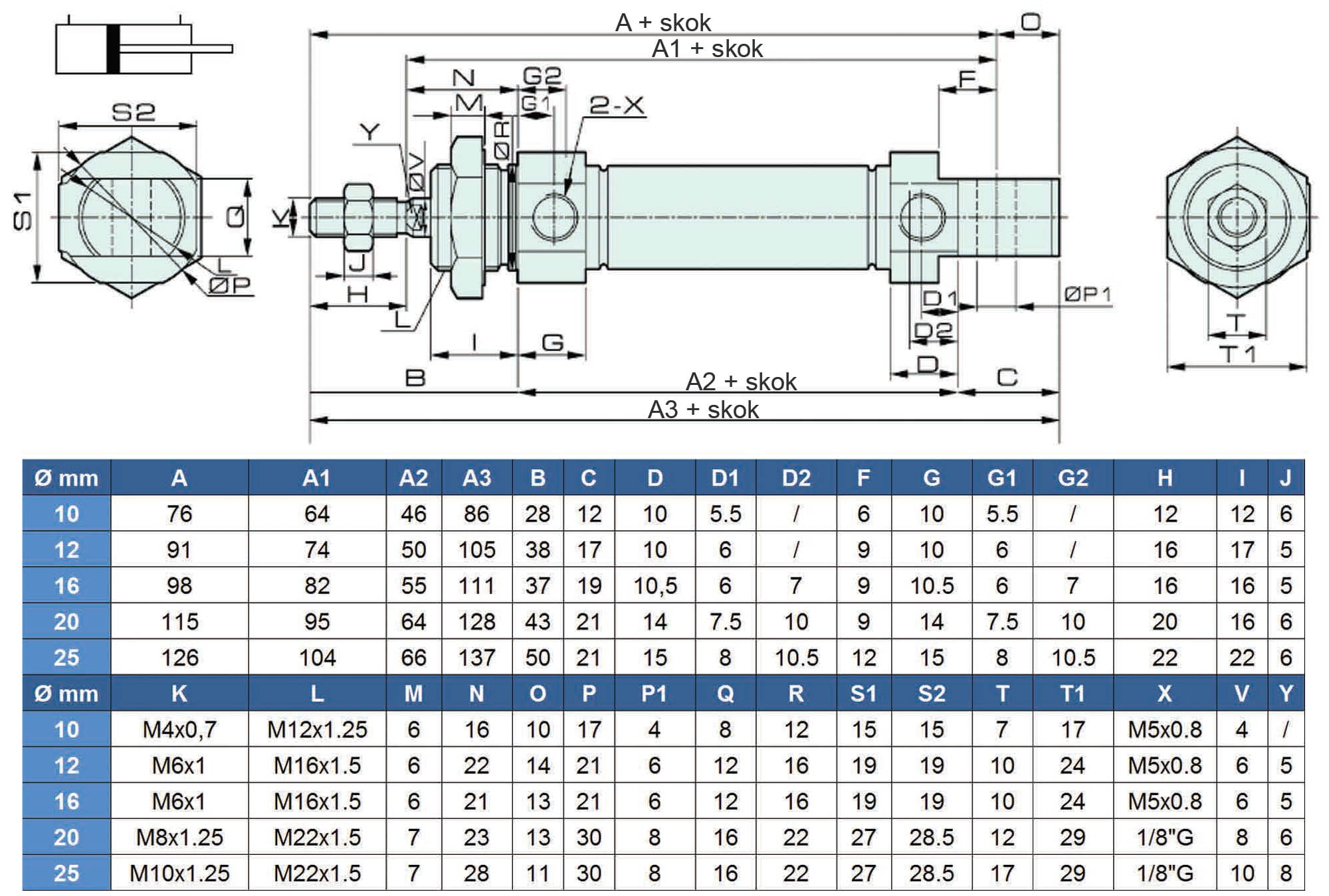 Siłownik ISO 6432 seria PSOM D25 mm