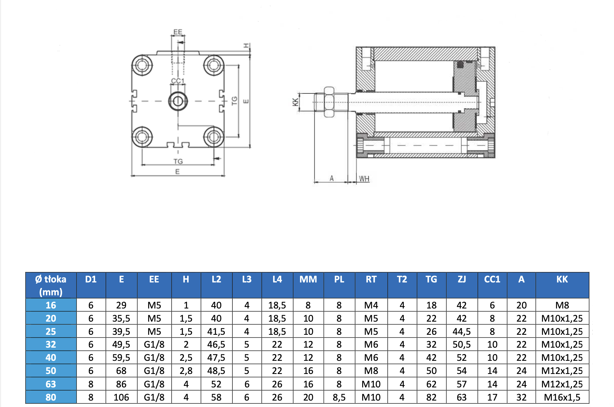 Siłownik kompaktowy UNITOP seria PSKU D20 GZ