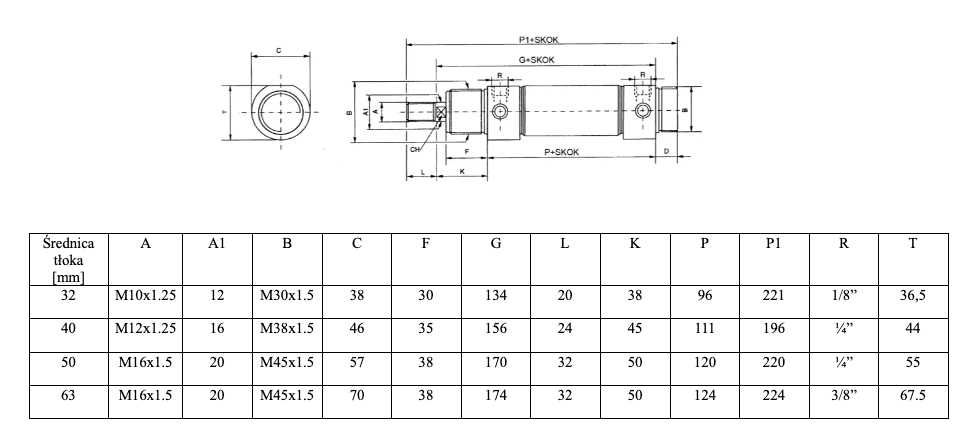 Siłowniki okrągłe powyżej D32 nie są standaryzowane według ISO