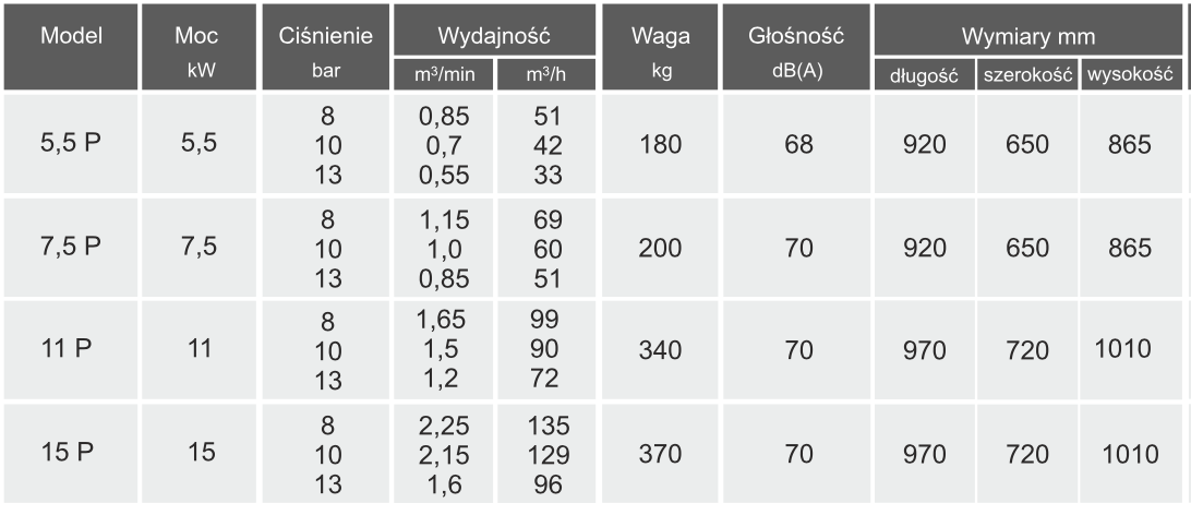 - sprężarki śrubowe wolnostojące: urządzenia bez zbiornika, idealne do montażu z już istniejącym układem, lub w połączeniu ze zbiornikiem pionowym