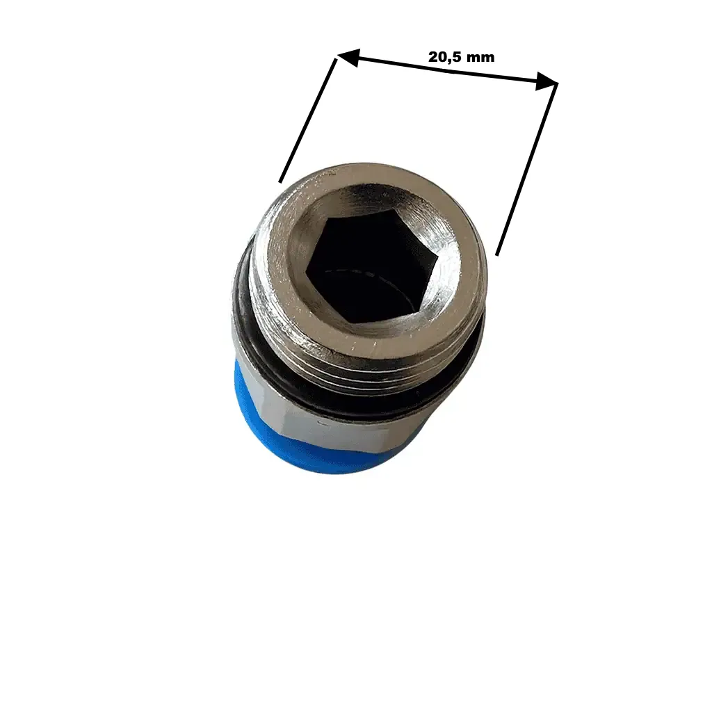 Złączki proste z jednej strony są gwintowane, z drugiej strony korpusu mają przyłącze wtykowe (pierścień zaciskowy). Jest to szybkie i szczelne połączenie.